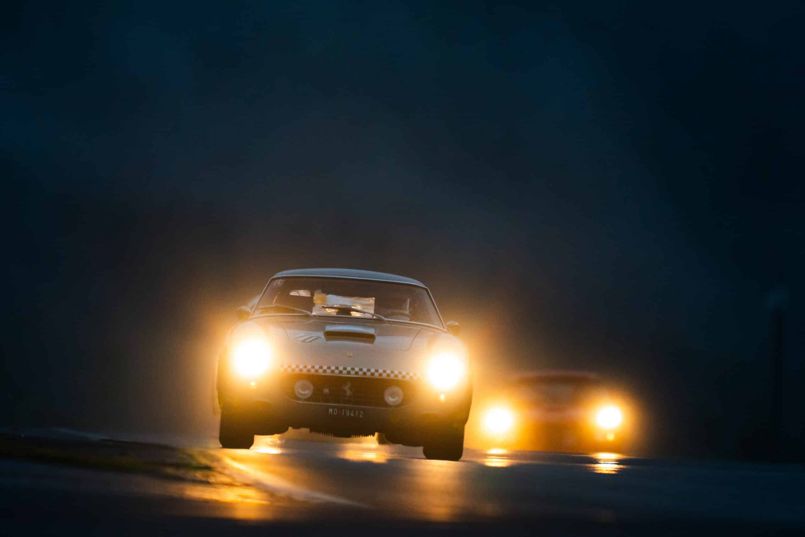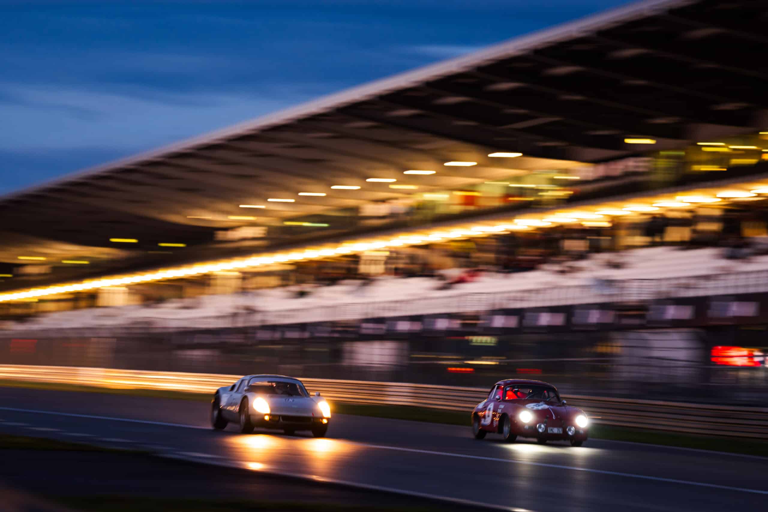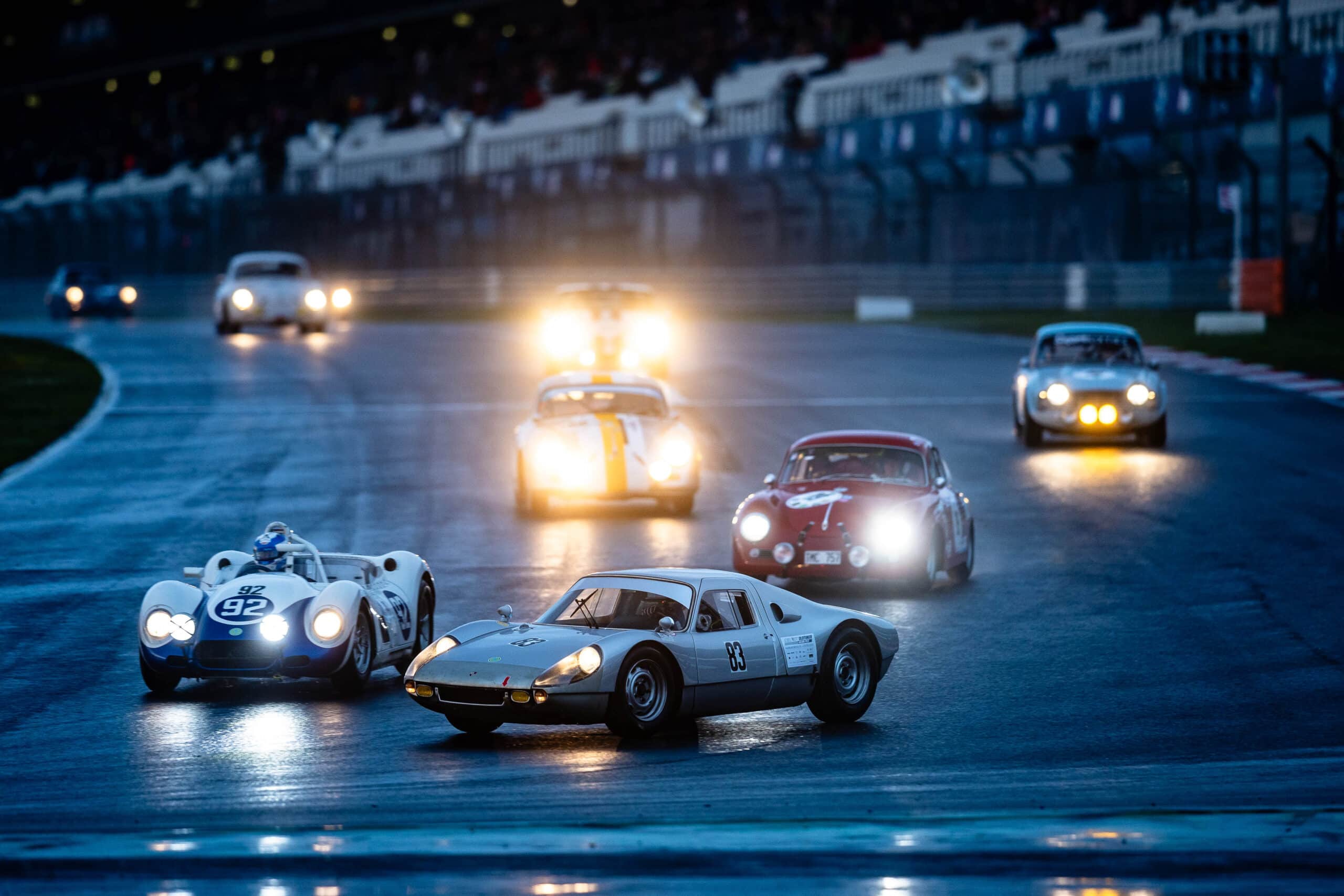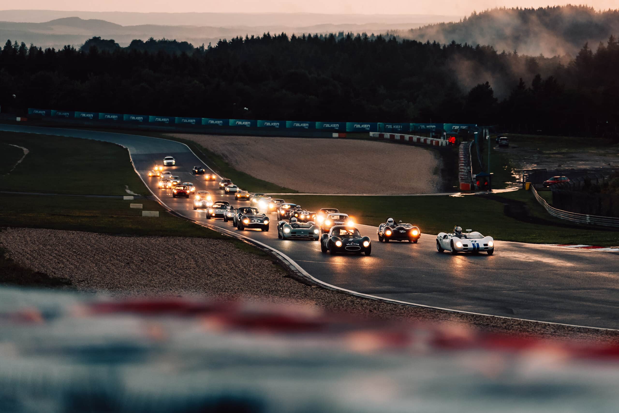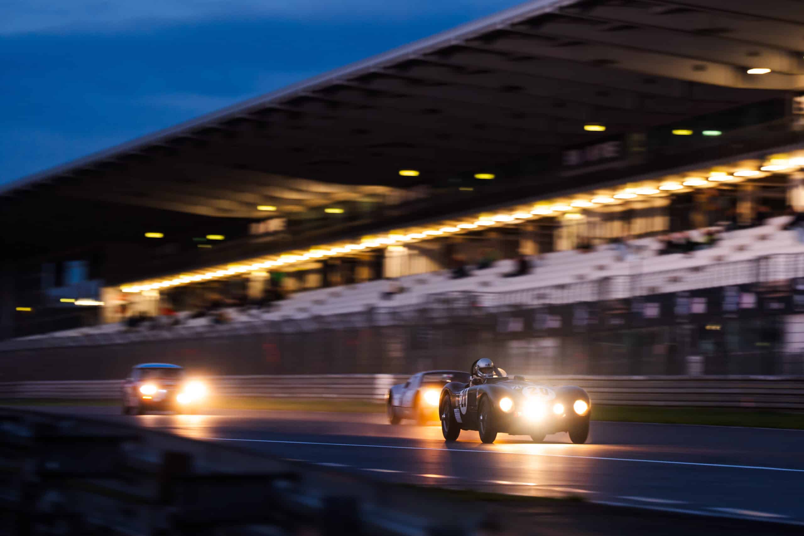 Als das kräftige Wolkenband am Samstagabend pünktlich kurz vor Rennbeginn abzog und der Regen aufhörte, atmeten viele Teilnehmer, Experten und Fans auf. Denn der Höhepunkt des Wochenendes – das Abendrennen der zweisitzigen Rennwagen und GT bis Baujahr 1971 – konnte bei einigermaßen erträglichen Streckenbedingungen stattfinden. Was dann folgte, war ein beeindruckendes Zusammenspiel aus historischen Motorsportlegenden und technischer Vielfalt. Und trotz einiger Ausrutscher entfaltete sich anschließend einmal mehr der spezielle Zauber, den nur die vielleicht schönsten Sportwagen aller Zeiten in der einsetzenden Dämmerung präsentieren können.