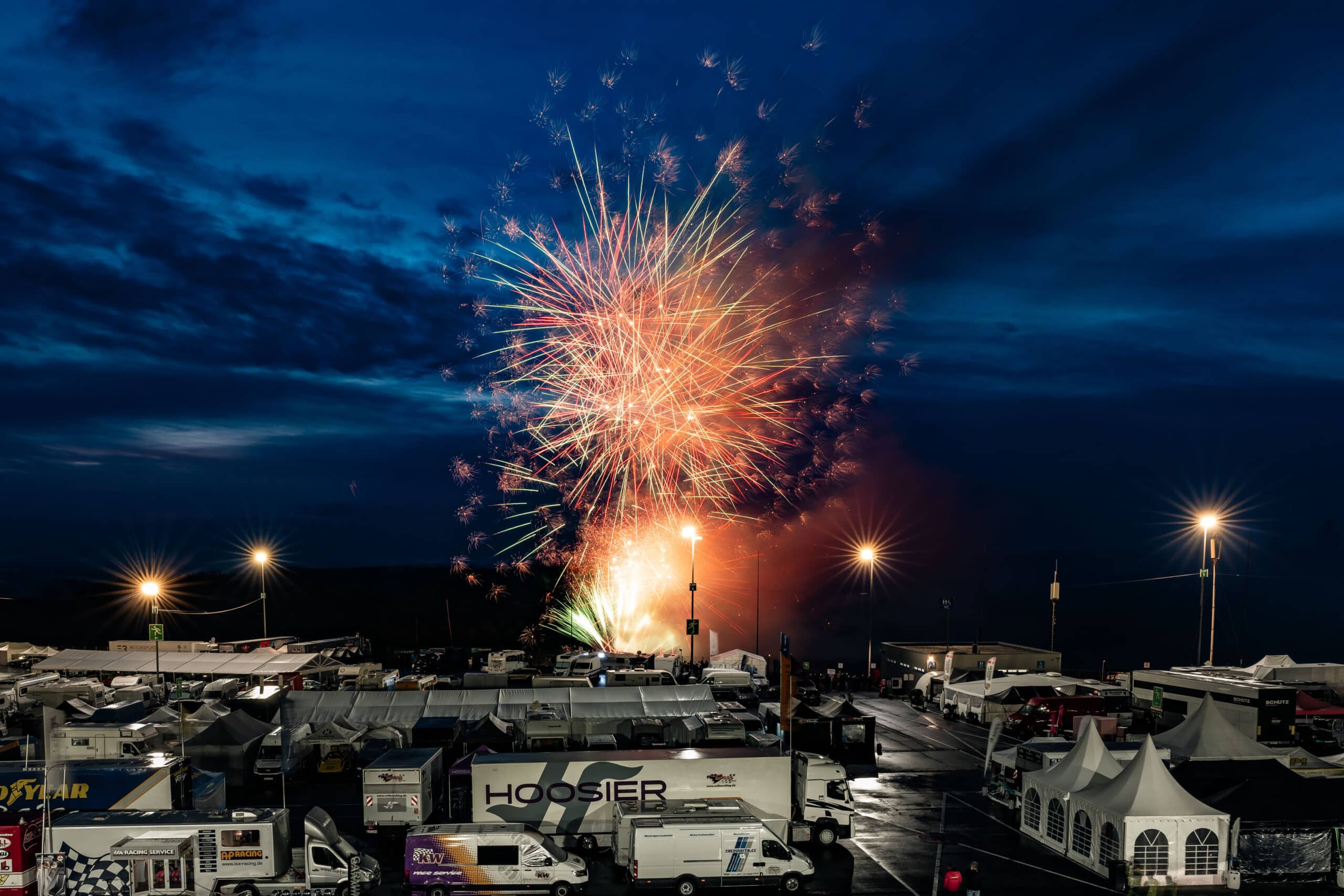 Nach dem Zieleinlauf rollte das Feld auf der Auslaufrunde in die abendliche Eifel hinein – und wurde mit dem traditionellen Feuerwerk empfangen, das über Start-Ziel aufstieg. Ein Moment voller Emotion, der das Herz jedes Enthusiasten höherschlagen ließ.